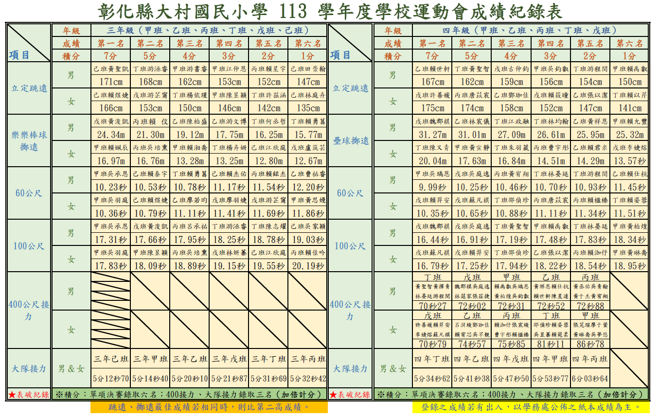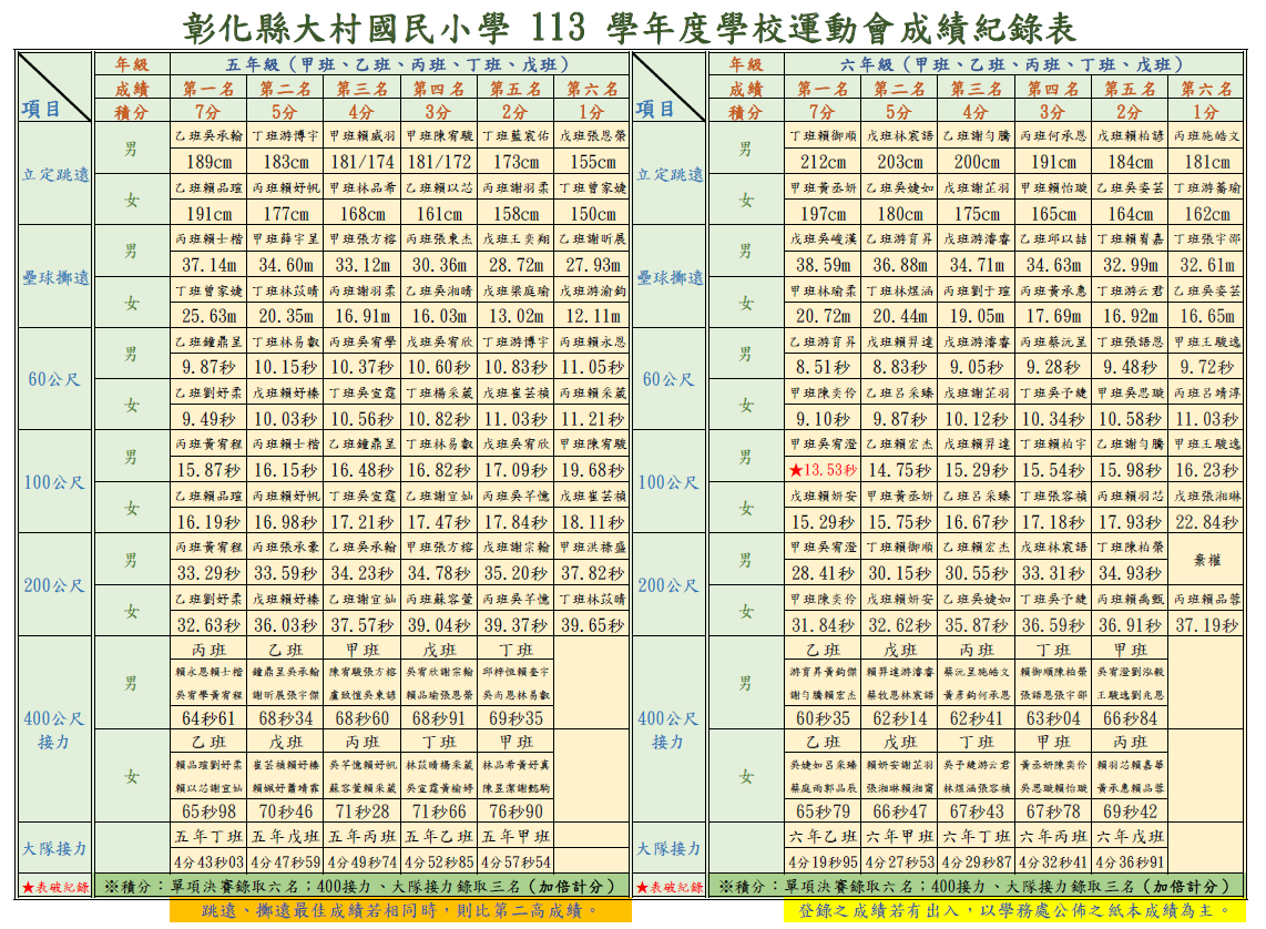賀 !!六年甲班 吳宥澄 同學 以13.53秒成績 破 100公尺賽跑 大會紀錄