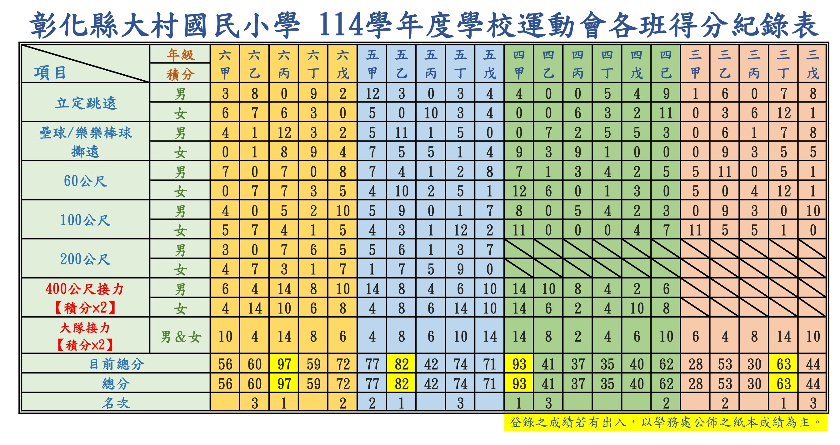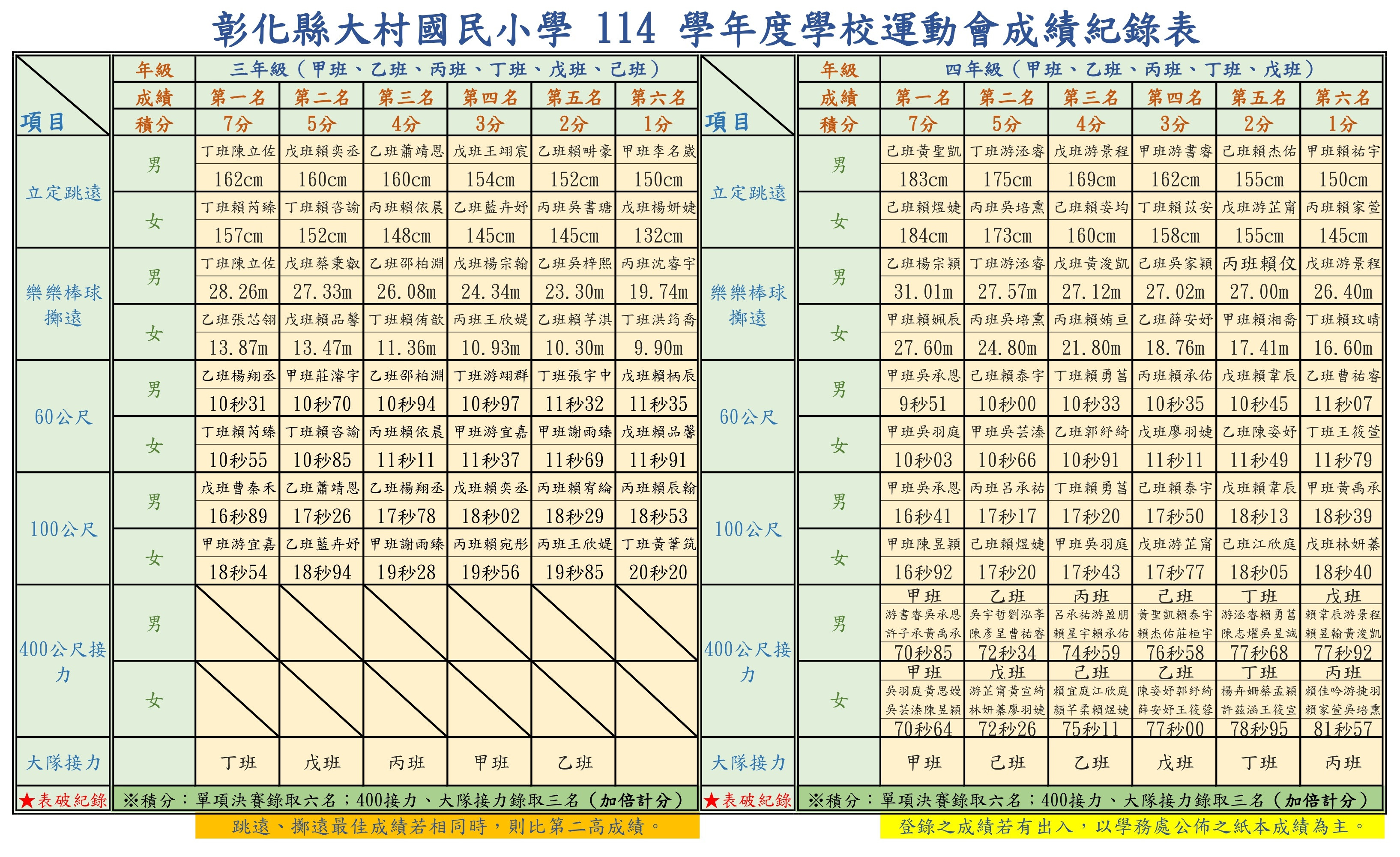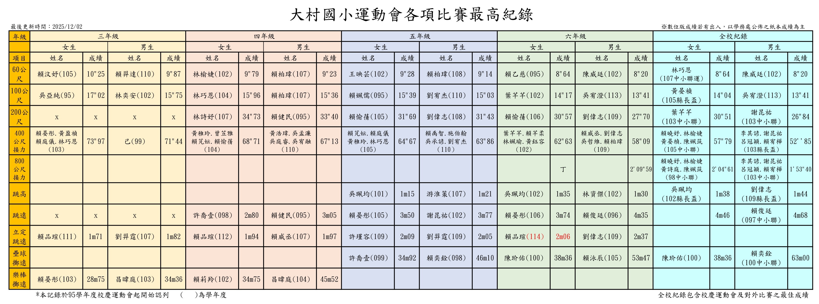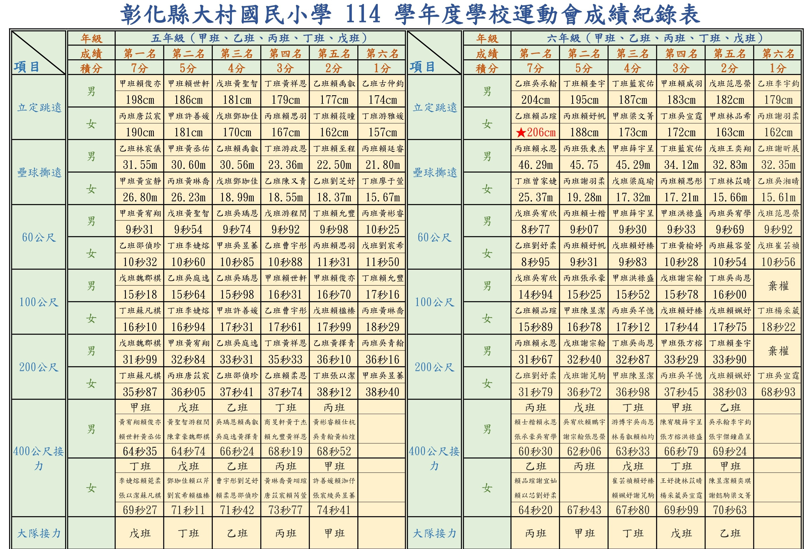 賀!!六年乙班賴品瑄同學 立定跳遠206cm 破大會紀錄