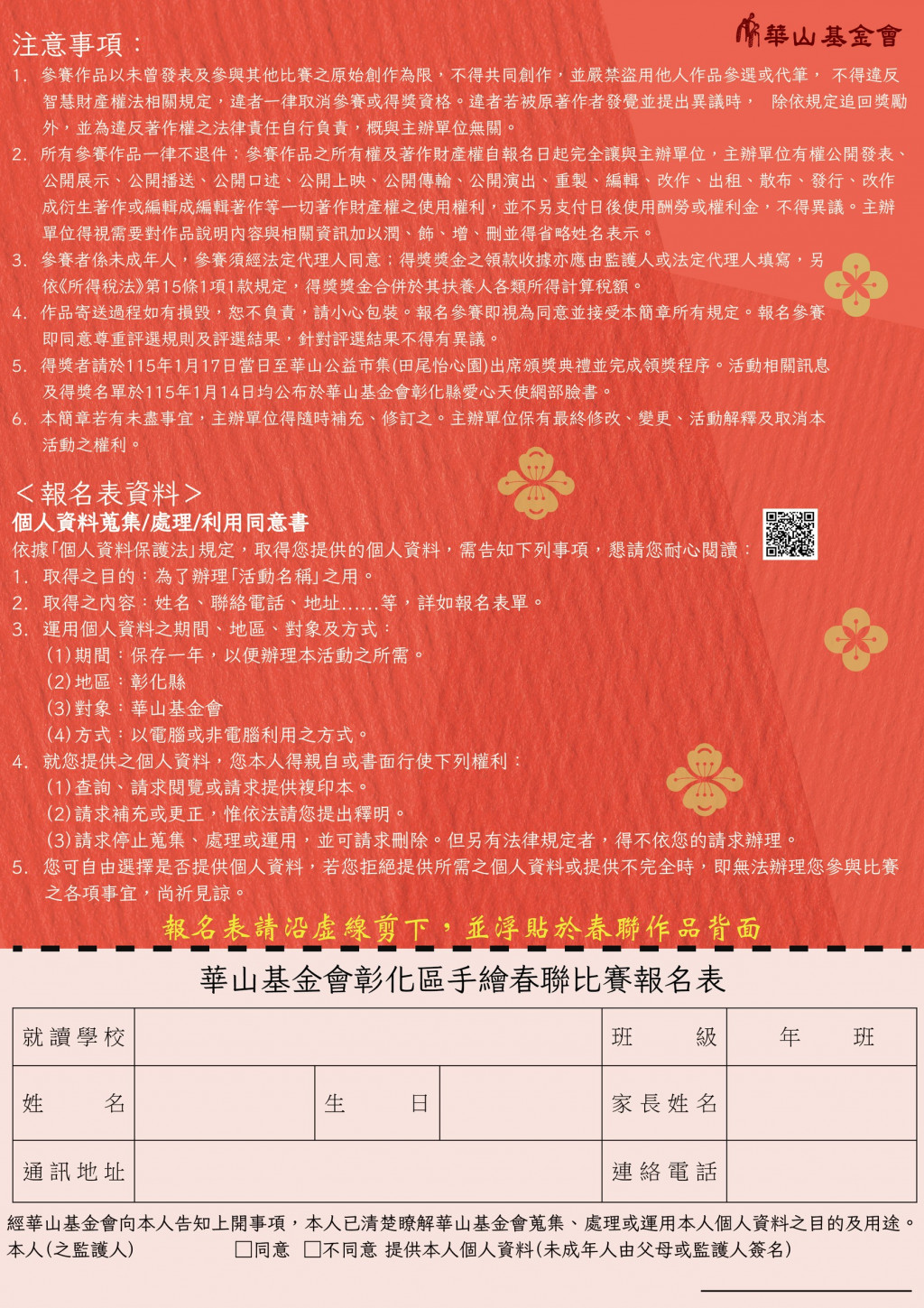 請有意願的高年級學生12/24(三)前至輔導室拿報名表及春聯,