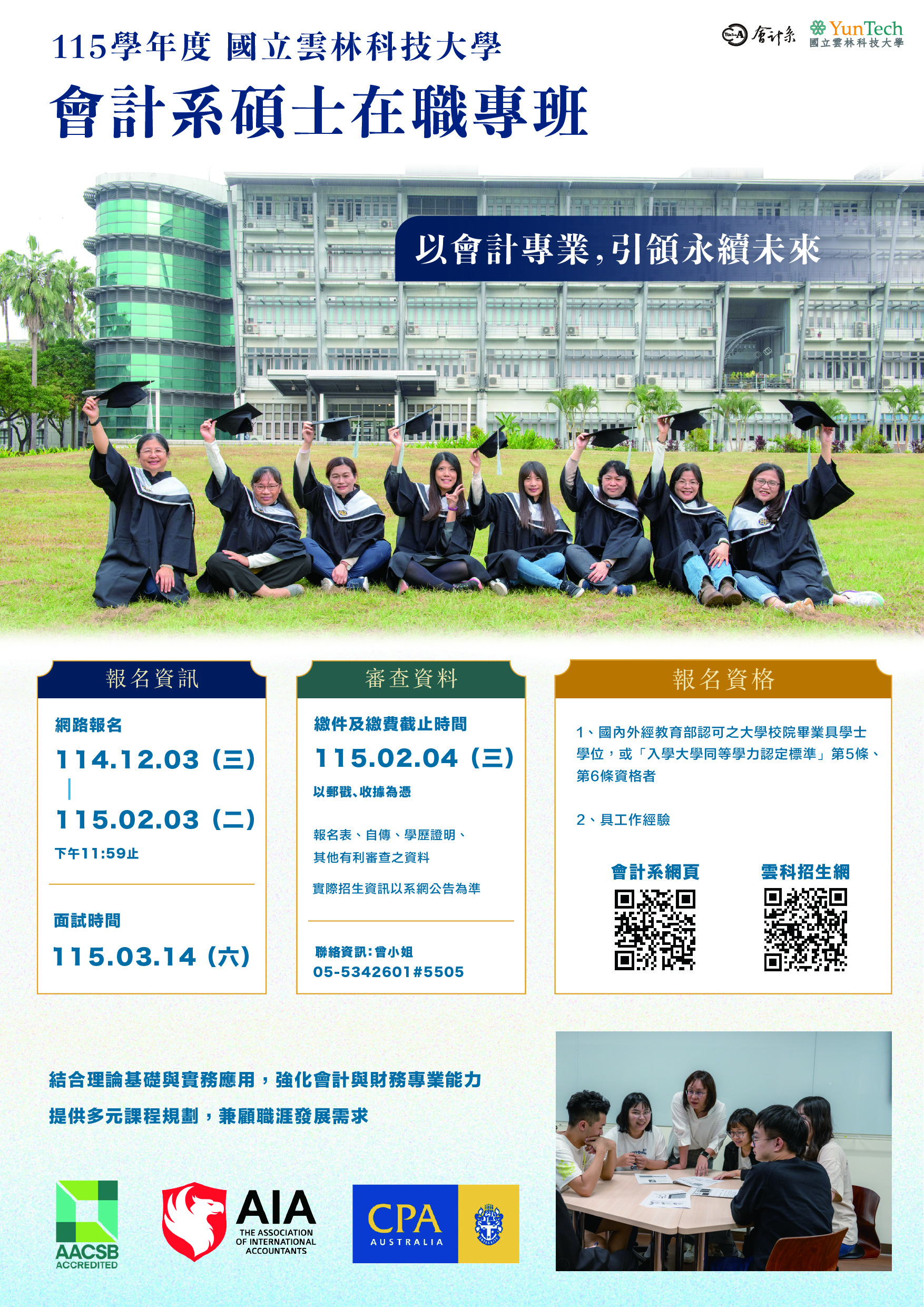 115學年度雲科大會計系碩士在職專班招生海報 (1151800023-0-0.jpg) |