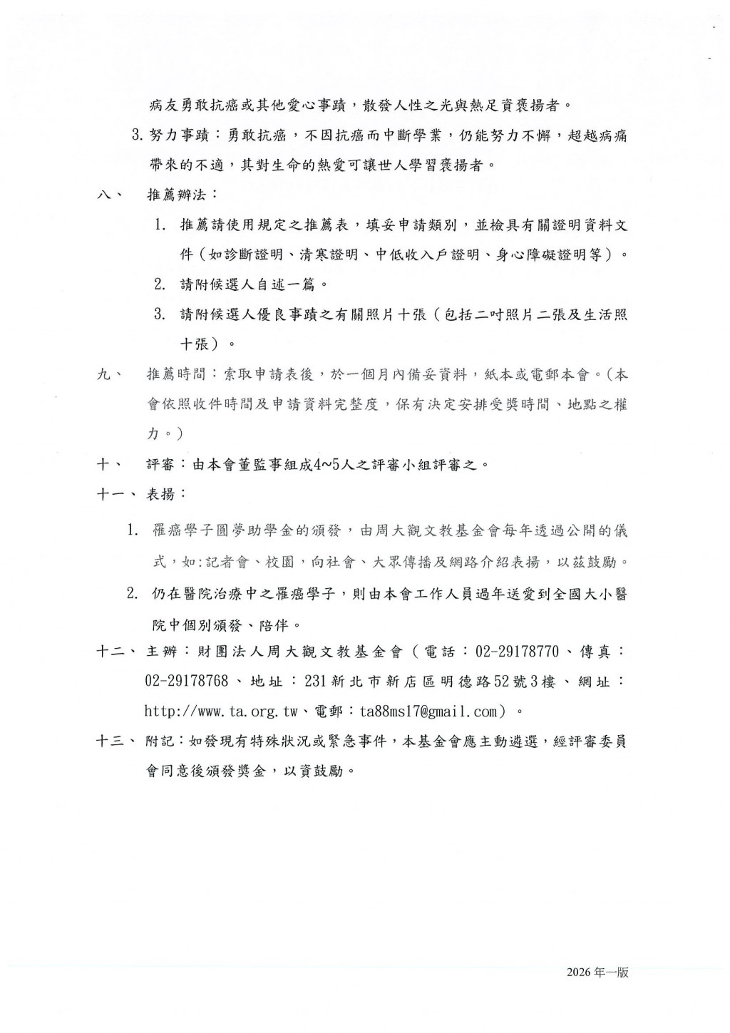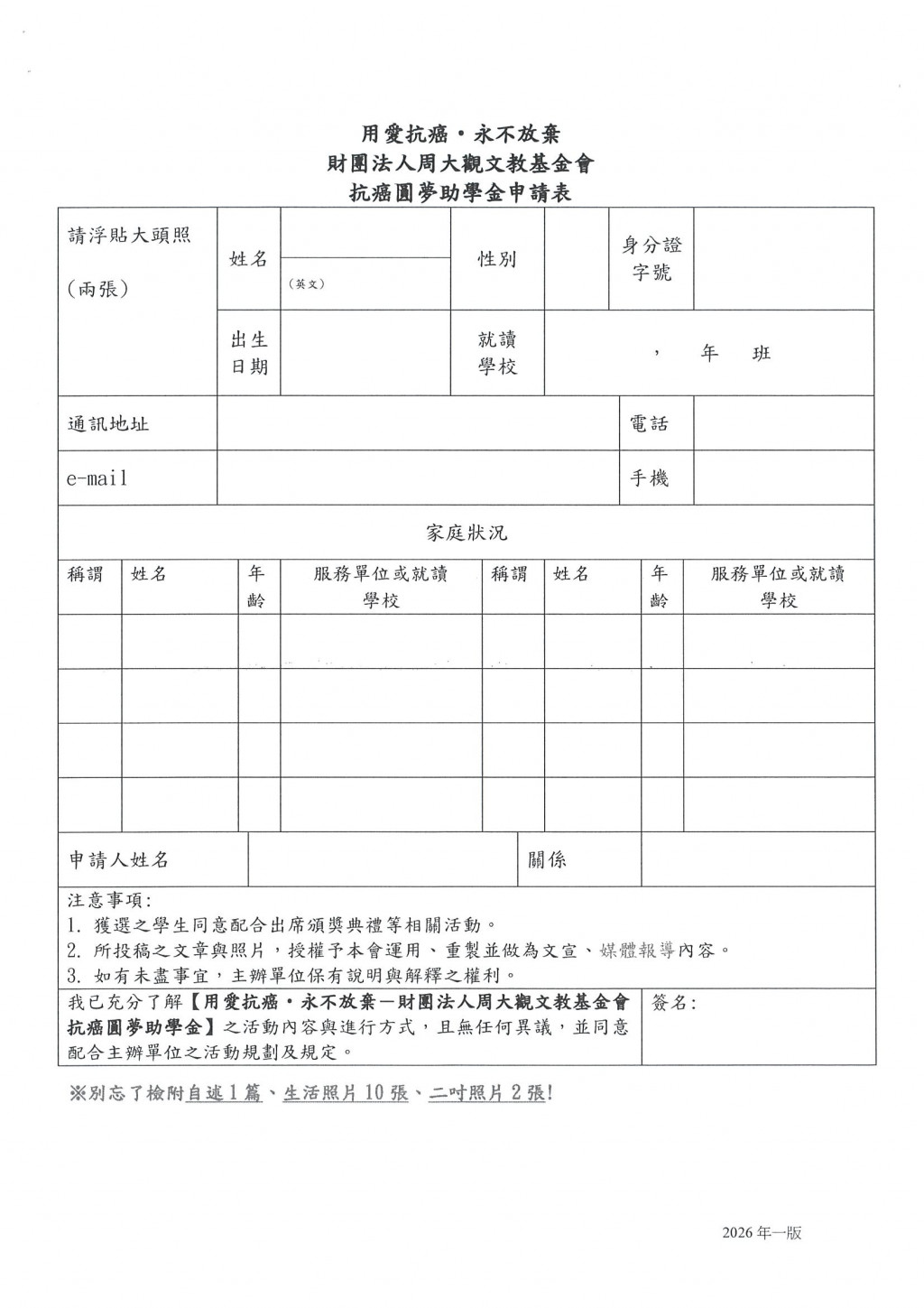 轉知-財團法人周大觀文教基金會辦理周大觀抗癌圓夢助學金頒發辦法及推薦表
